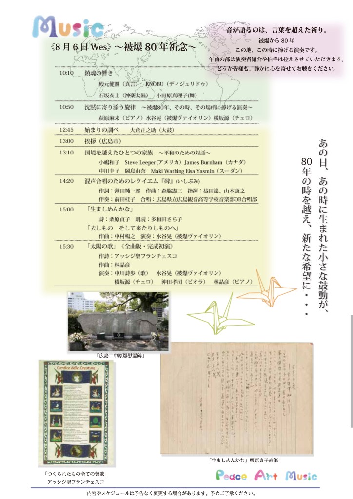 Peace+Art+Music 広島の平和記念日を挟んで開催するイベント